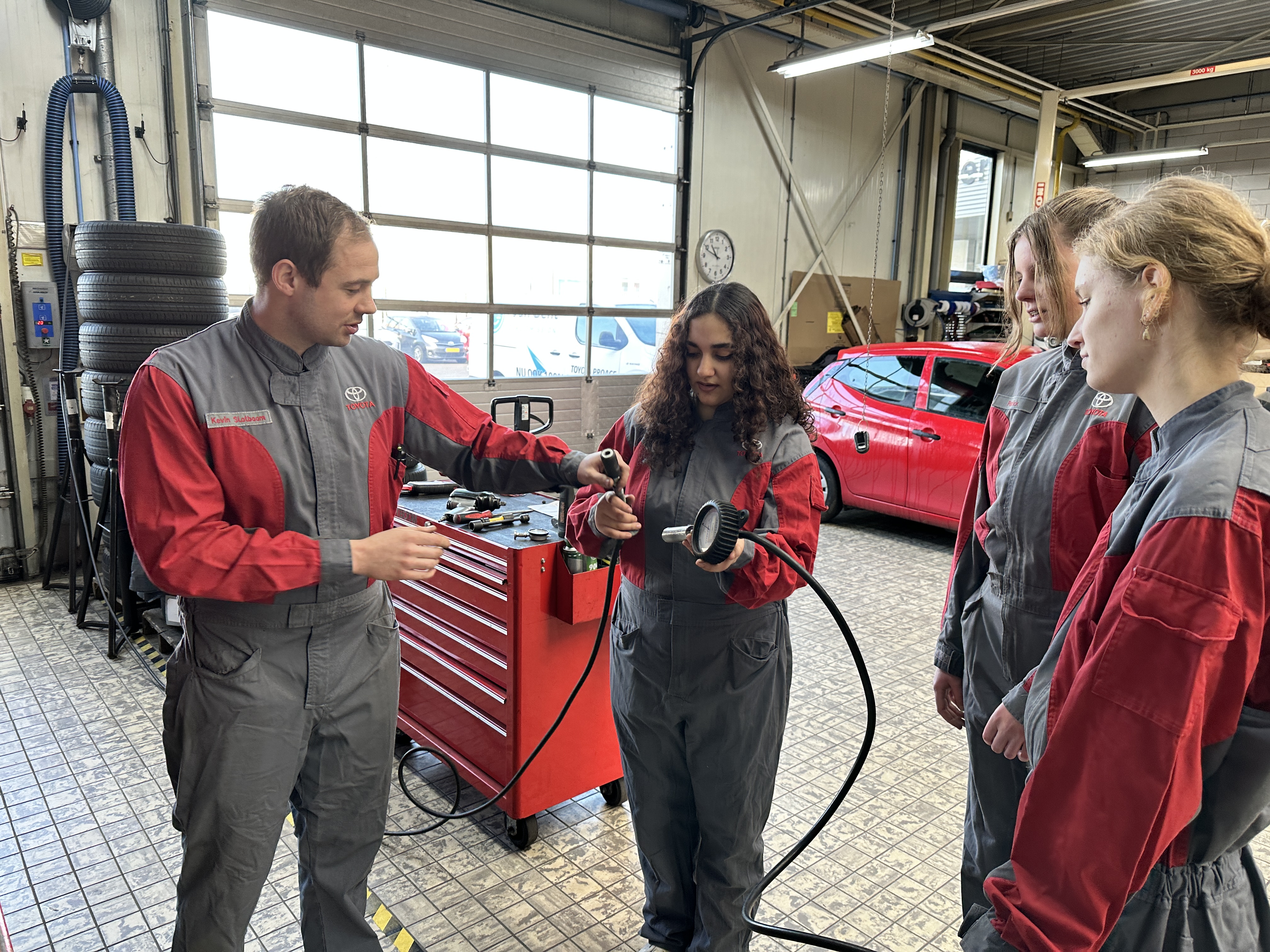 We werden vereerd met het bezoek van leerlingen van Het Perron en Rembrandt College. Na een korte introductie en rondleiding was het handen uit de mouwen. In de werkplaats en bij de schadeservice meewerken. Maar ook de verkoopcollega's assisteren.
